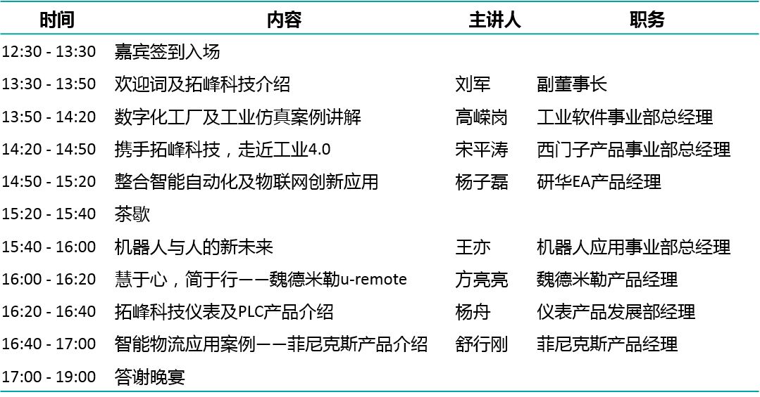 本次活动就数字化工厂及工业仿真、智能自动化及物联网创新应用、机器人与人的新未来、智能物流应用等议题进行充分的分享与交流,意在同与会人员一起分享17c吃瓜网 科技的17c吃瓜网案例、技术经验和产品应用。